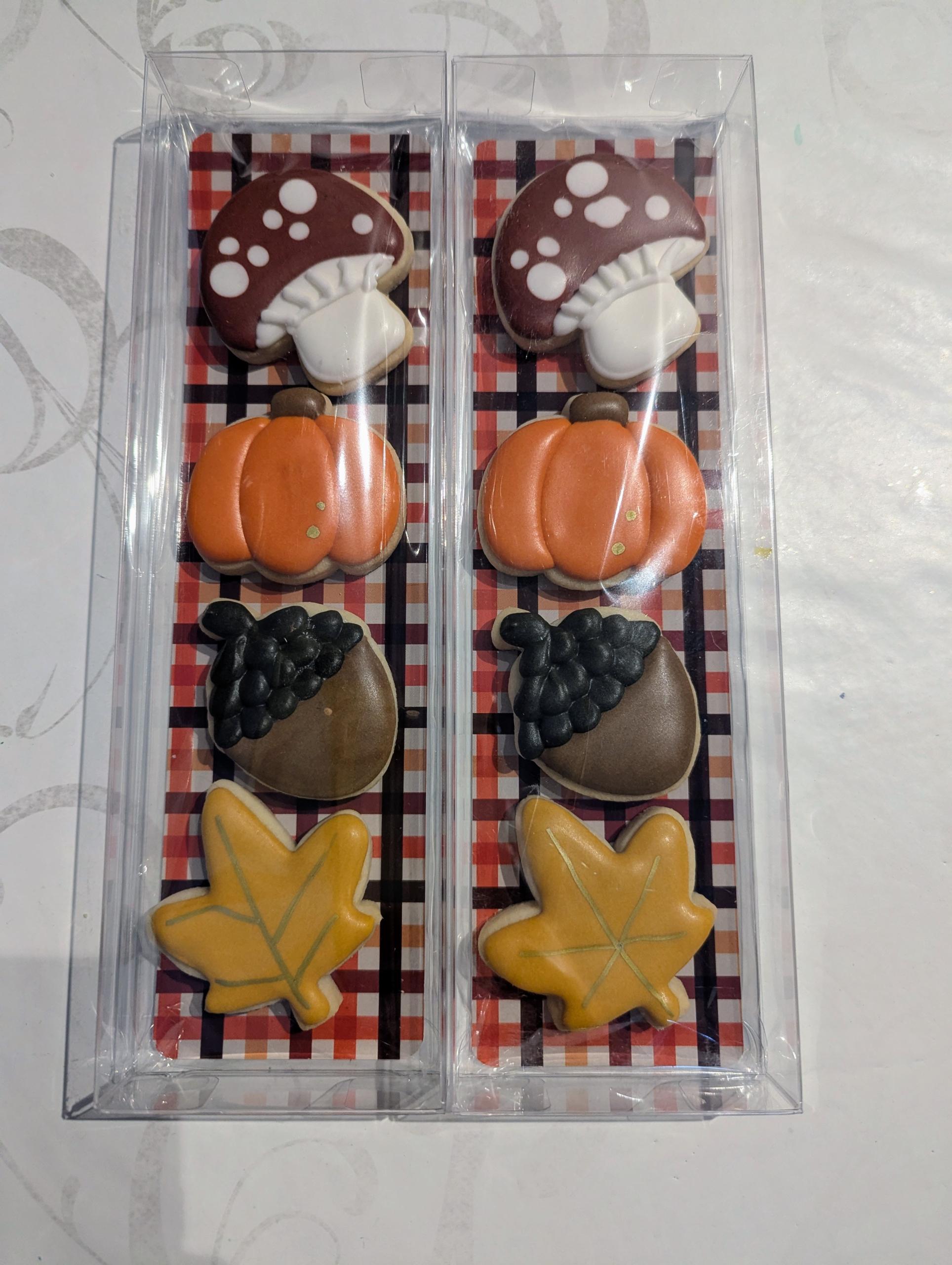 These boxes are sized to fit 9.5″ x 2.625″ tall skinny backers right inside. Holds 4-5 mini cookies.