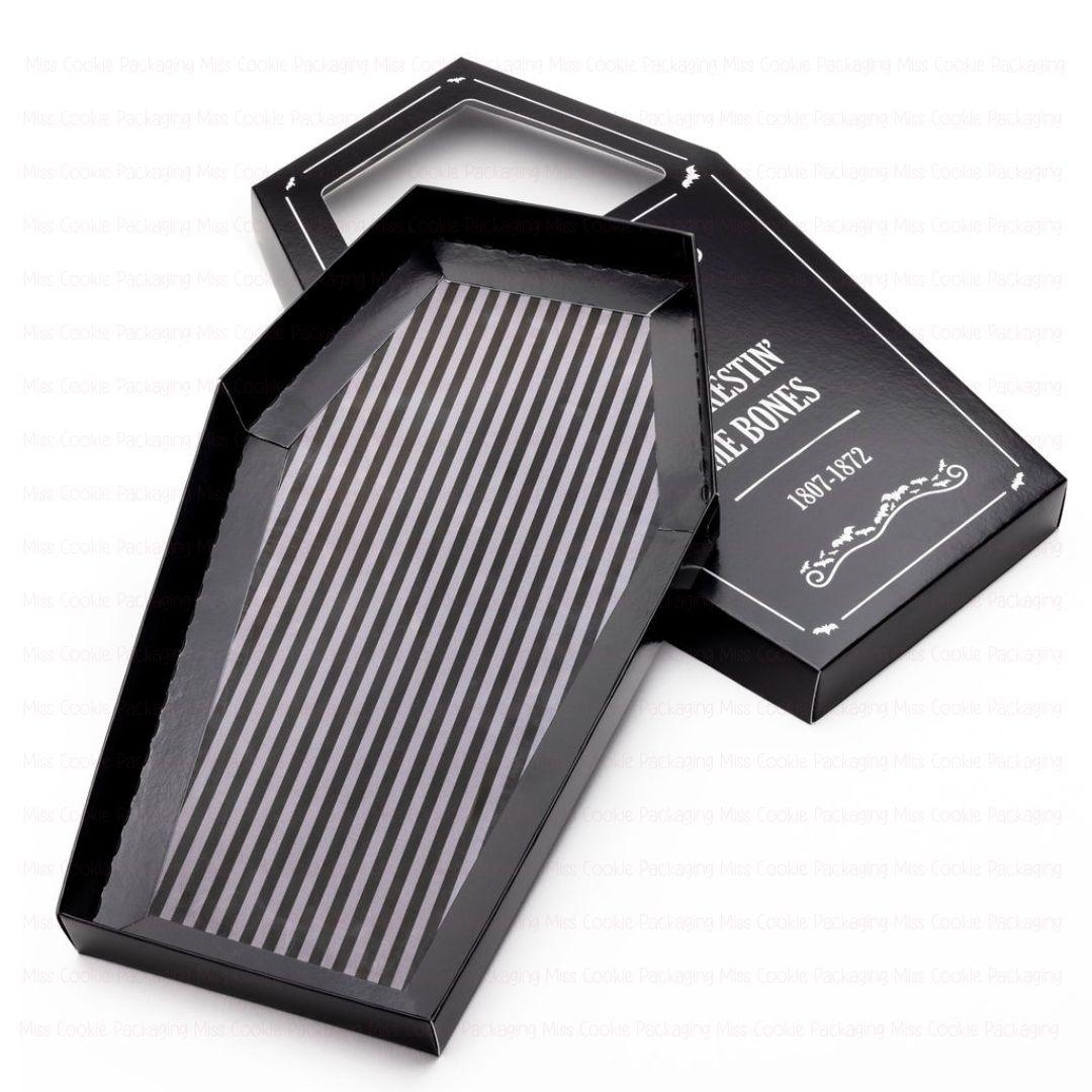 Use this custom designed Coffin Box to package the most adorable skeleton cookie set this Halloween! Size is 14” x 8.5” x 1.25”.