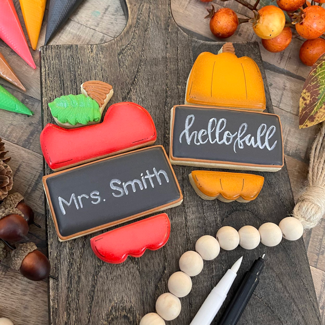 Our new and improved brush tip pen is super pigmented and perfect for filling in larger spaces or calligraphy style writing. Get the chalk style look on black icing and other finishes!