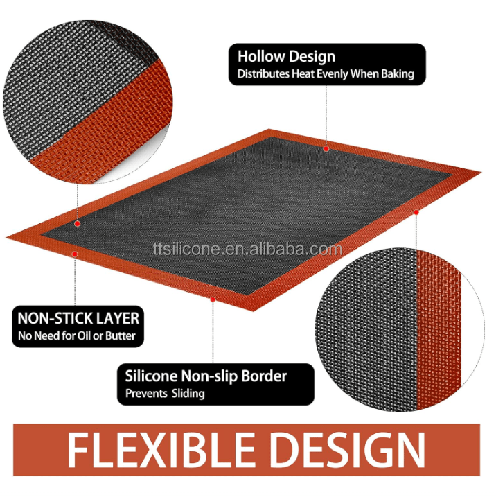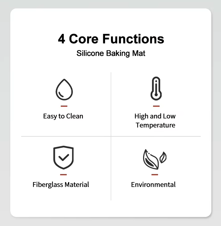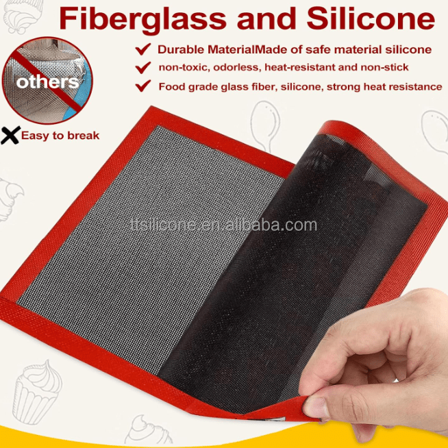Made of high-quality silica gel and glass fiber, the mats are non-toxic and odourless. They withstand oven temperatures up to 230°C.
